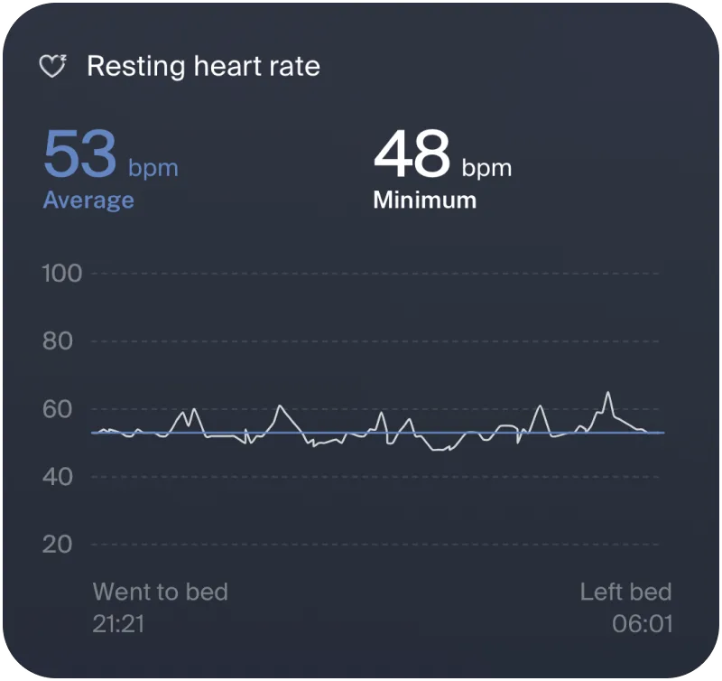 Velia tracks how your blood pressure patterns evolve during sleep, helping you see how your vascular system regulates over time. Understand whether it returns to baseline, rises, or becomes less stable, so you can notice meaningful changes early.