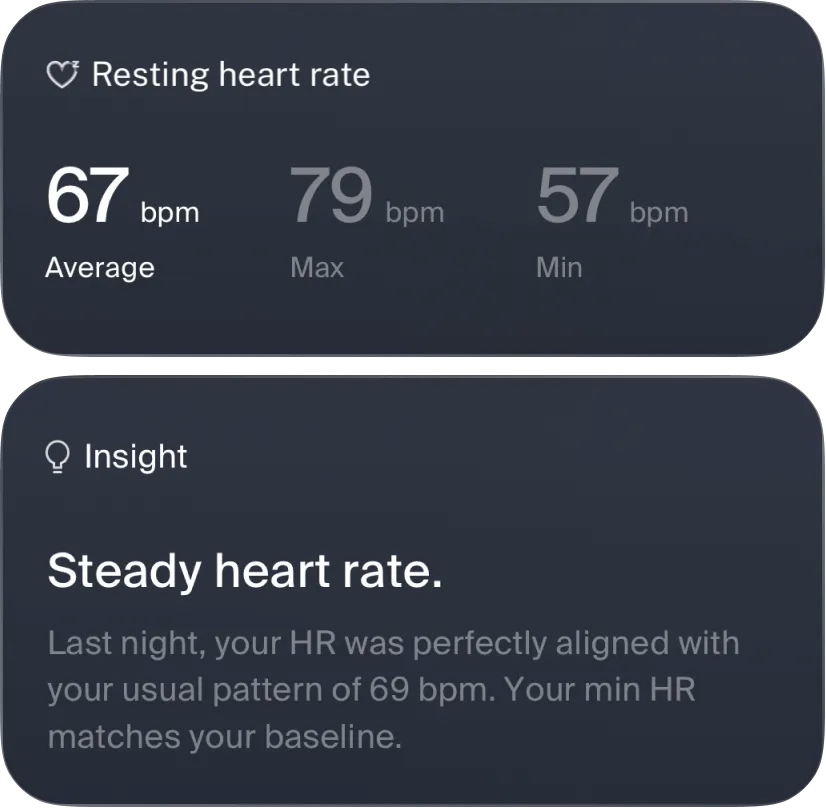 With Velia’s continuous heart rate tracking, you quietly stay connected to your body’s signals, without any extra effort or alerts. See gentle patterns unfold over time, helping you understand how daily moments shape your well-being, so you can support your health with confidence, at your own pace.